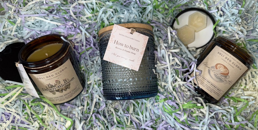 I had the joy of receiving two candles and a jar of wax melts from Soli Deo Gloria Candle Company, and here’s what stood out: