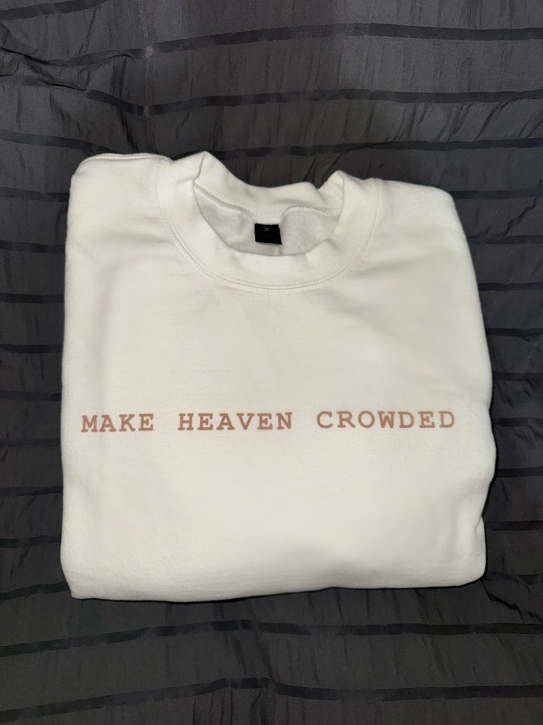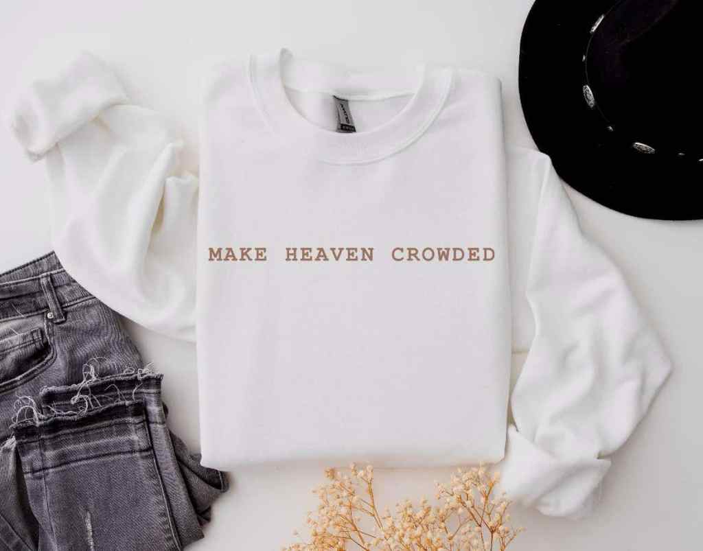 One of my favorites is the “Make Heaven Crowded” sweatshirt. It’s cute, comfy, and carries such a beautiful message. The fit is just right, and it’s perfect for cozying up on chilly days while still looking stylish. The simple design paired with the powerful message is exactly what I love about Courtnee’s products—thoughtful, meaningful, and fashionable all in one. This sweatshirt can be used as a conversation starter, or even just to show love for my God!