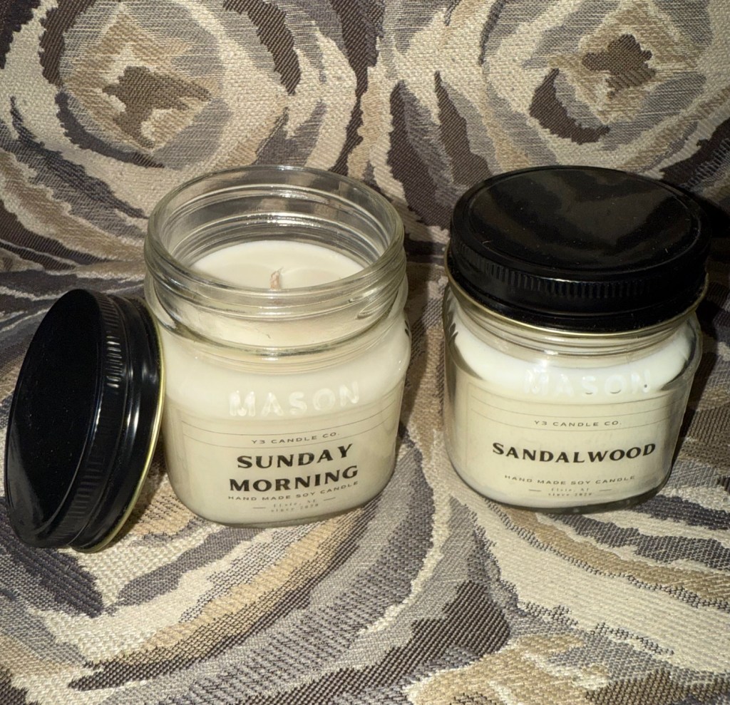 I have two candles from Y3, the sandalwood and Sunday morning scents. They are cute and a great size. Mine are the mason jar ones, although the other containers that Mandy offers are adorable! I like the sandalwood scent, but I love the Sunday Morning scent. It’s clean, cozy, and just makes the whole house smell good! Honestly, it just feels good burning a candle that I know isn’t harming my family. That matters to me more than anything.
